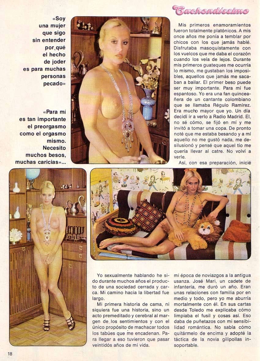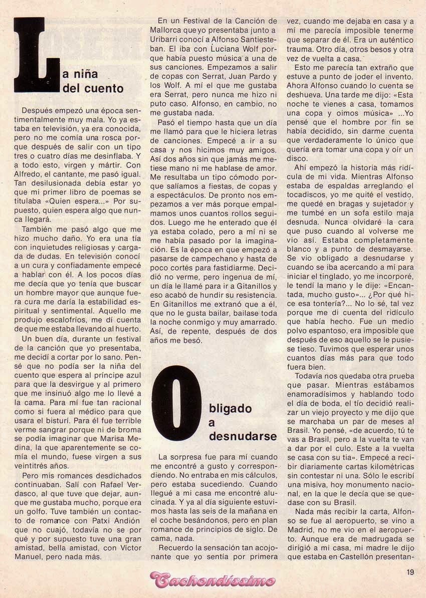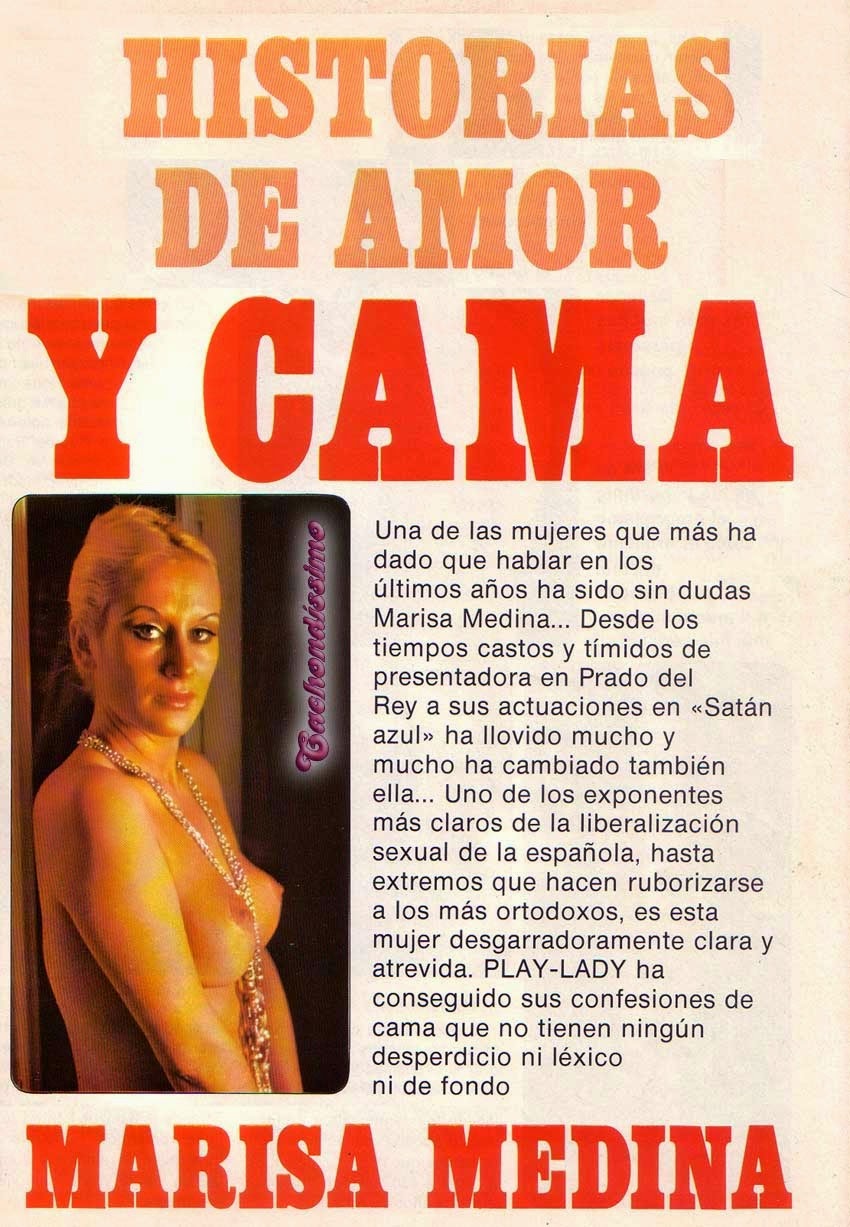 Justo en ese momento mi prima me dino que tenia algo que me gustaria ver, yo le pregunté que era, a lo que me contestó que una revista donde salia Marisa Medina desnuda, Marisa Medina era la presentadora de continuidad de TVE, la que anunciaba el programa que veriamos después.